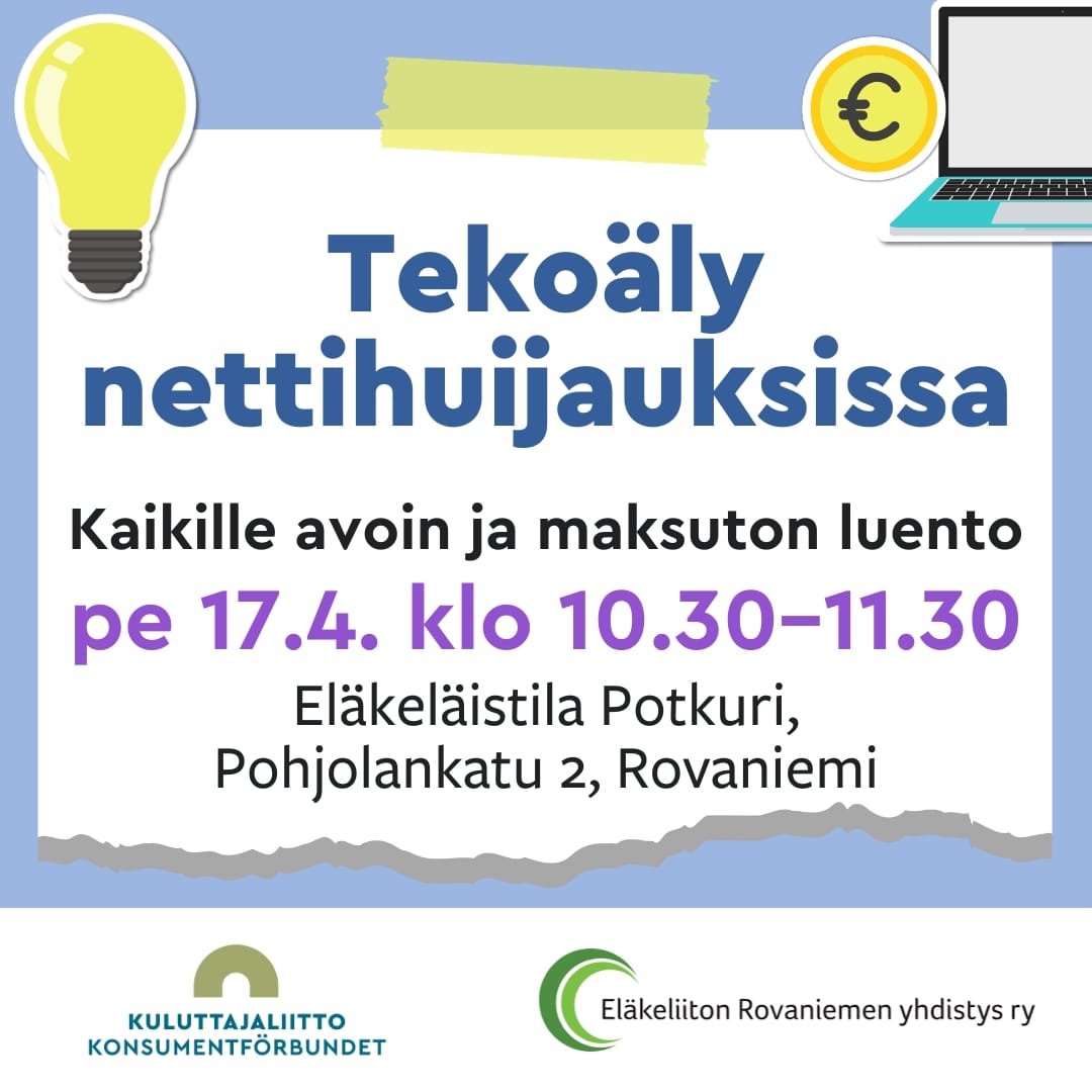 17.4. Tekoäly nettihuijauksissa luento klo 10.30-11.30
